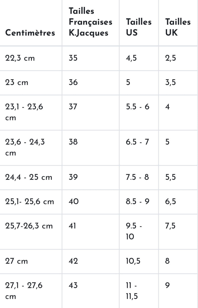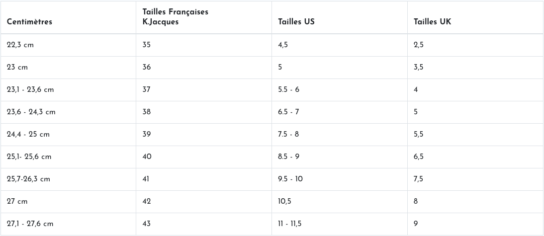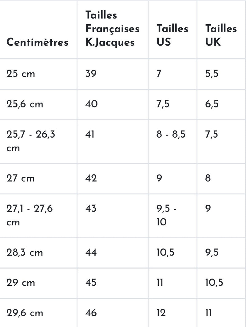 K.Jacques Size Guide