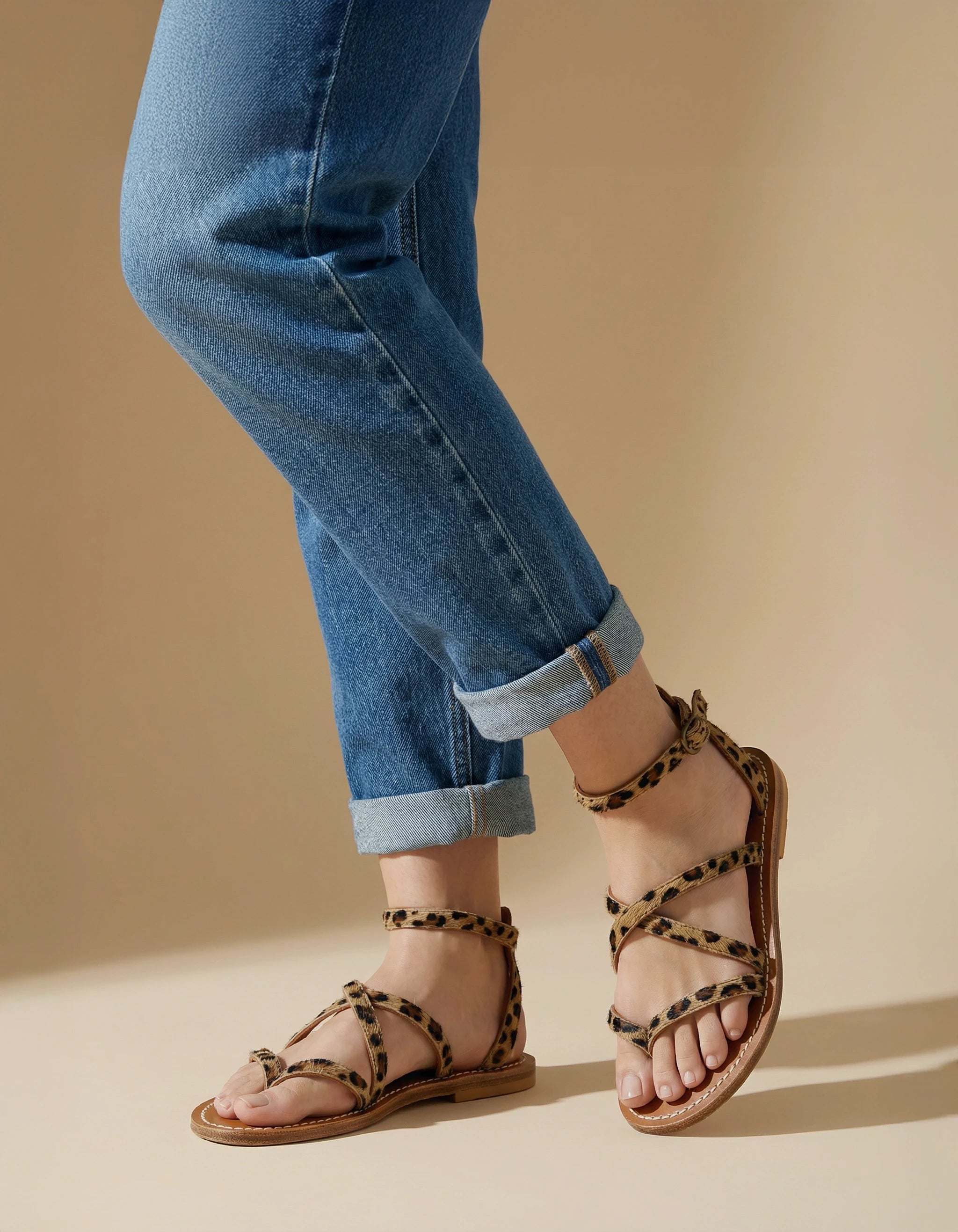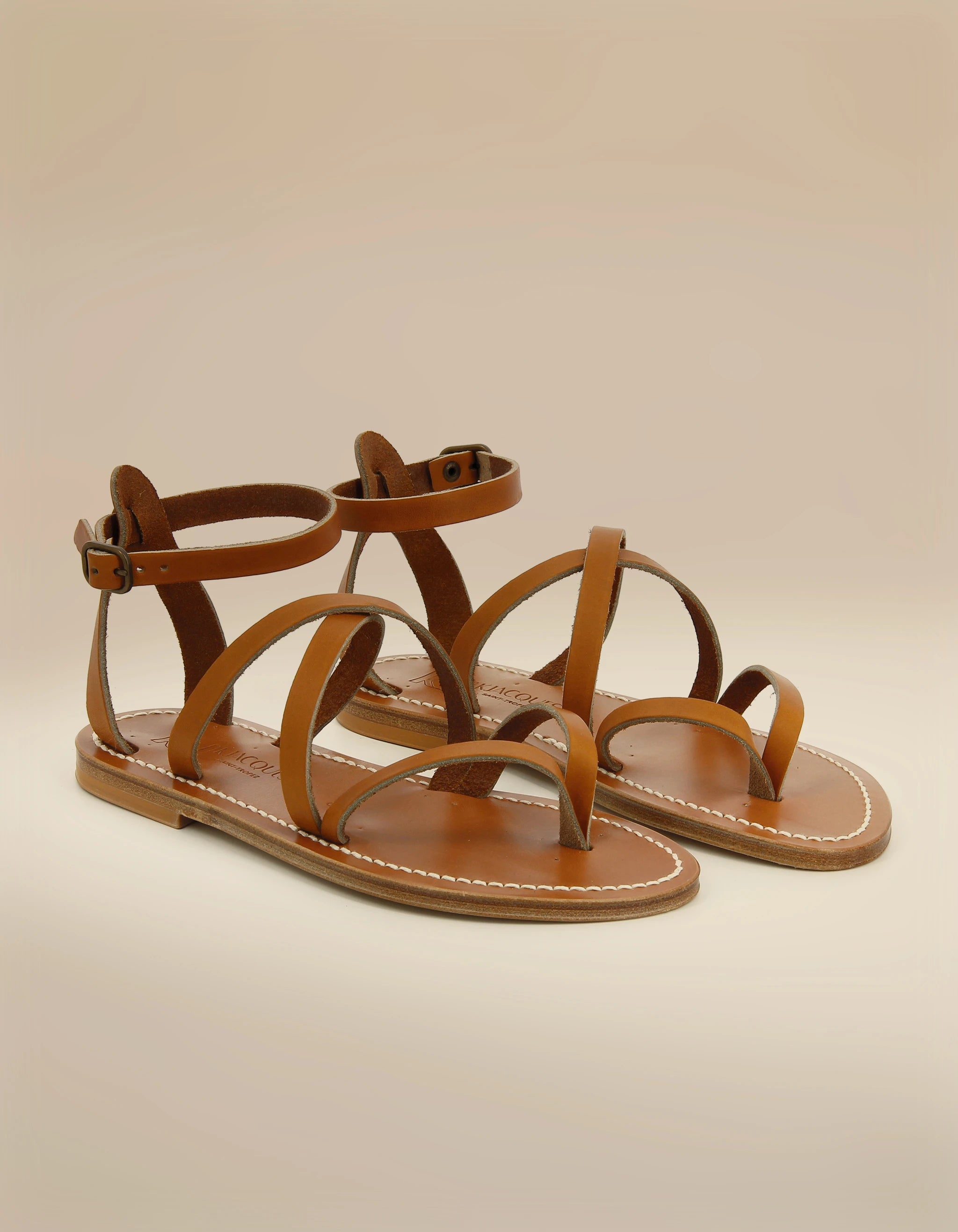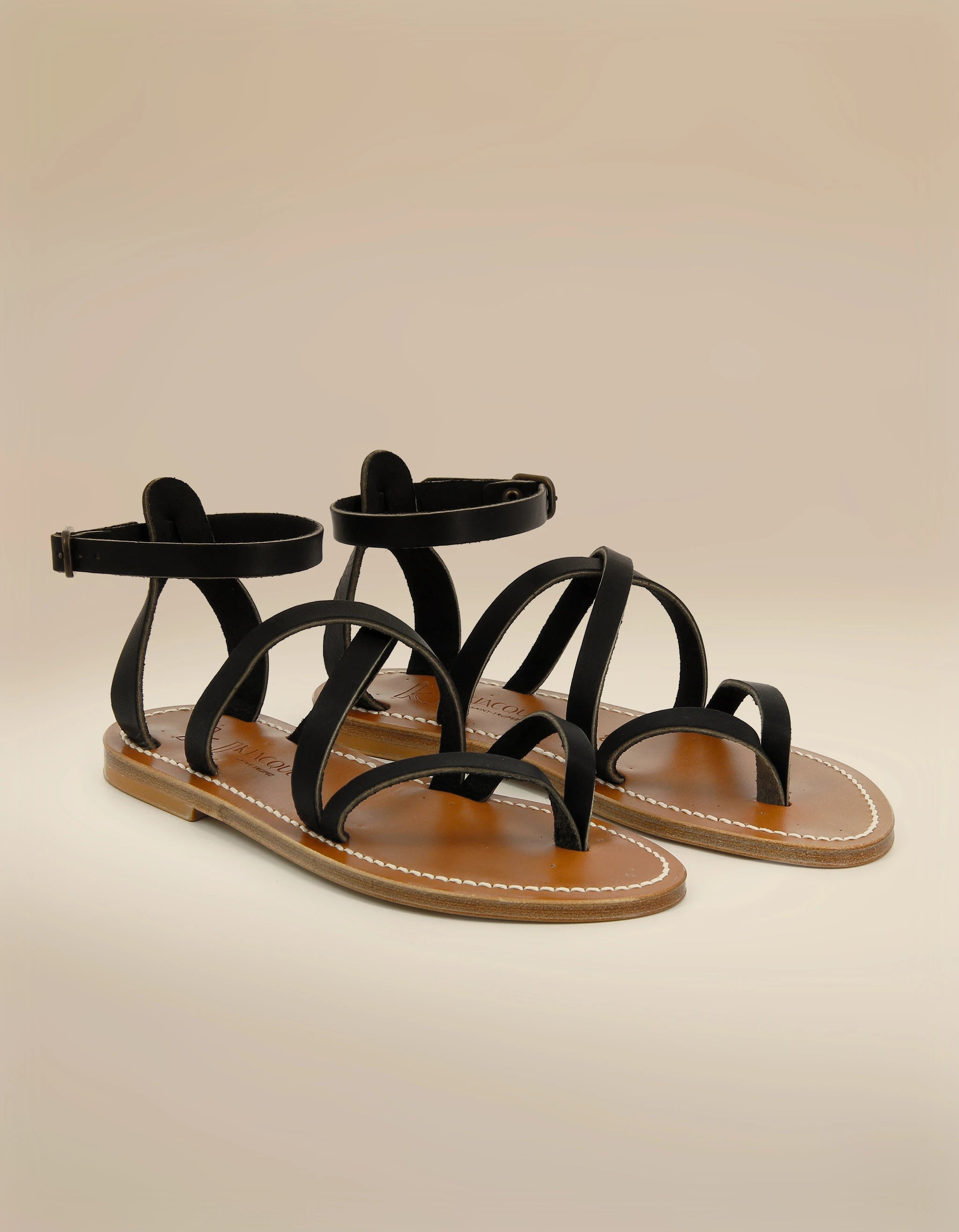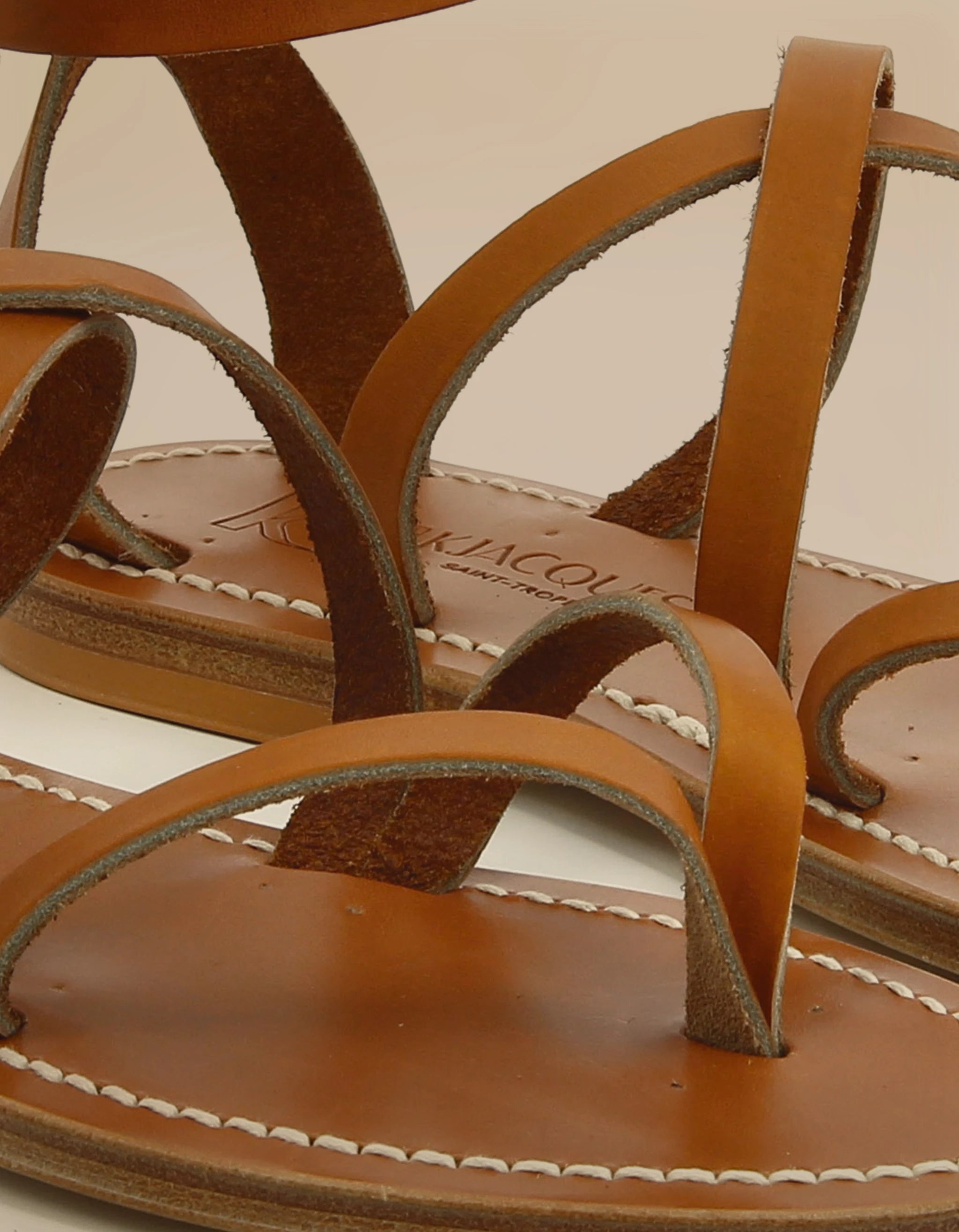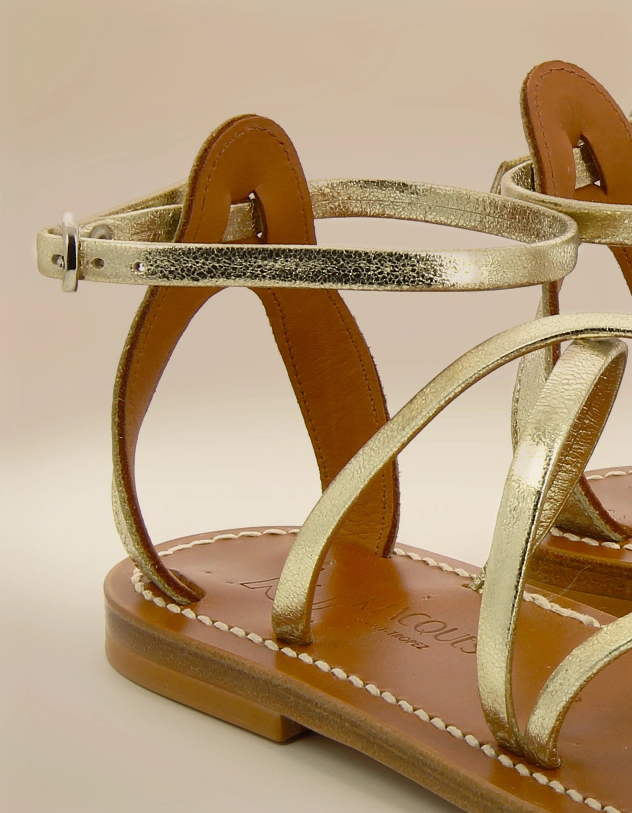 Both refined and casual, the K.Jacques Épicure model is characterized by the criss-cross leather straps on the instep. Its goose-foot-shaped heel strap elegantly supports the heel and fastens securely to the foot with an ankle strap.
