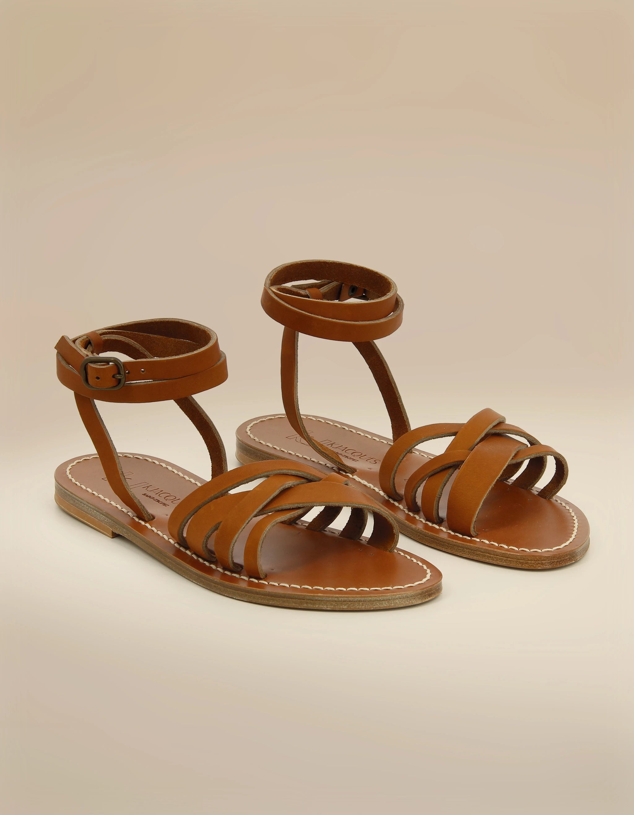 The GALAPAGOS model is the perfect choice if you're looking for comfortable sandals that can be easily worn with a short dress or shorts, from day to evening! These flat sandals feature multiple straps across the front of the foot and an adjustable ankle strap. K.Jacques sandals are handmade by our artisans in Saint-Tropez, France. Our Tropéziennes are made with a leather sole and a natural hevea rubber heel.